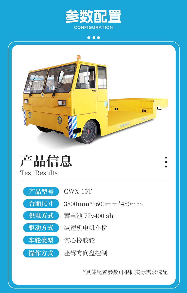 描   述: 3.8米長2.6米寬載物平臺,額定載荷10噸,臺面凹型設(shè)計,輕松應(yīng)對較高設(shè)備過跨轉(zhuǎn)運(yùn),再也不用為設(shè)備尺寸發(fā)愁,車體前方配備獨(dú)立駕駛室,方向盤操控輕松上手,內(nèi)置72V400ah大容量蓄電池,節(jié)能環(huán)保續(xù)航能力出眾,減速機(jī)+電機(jī)+車橋高效驅(qū)動,四組大直徑實(shí)心橡膠輪胎,防滑耐磨耐刺穿復(fù)雜路況輕松拿捏,標(biāo)配LED大燈、轉(zhuǎn)向燈、示廓燈,夜間行車安全有保障,適用于各類廠區(qū)車間倉庫的物料短駁與設(shè)備轉(zhuǎn)運(yùn)!