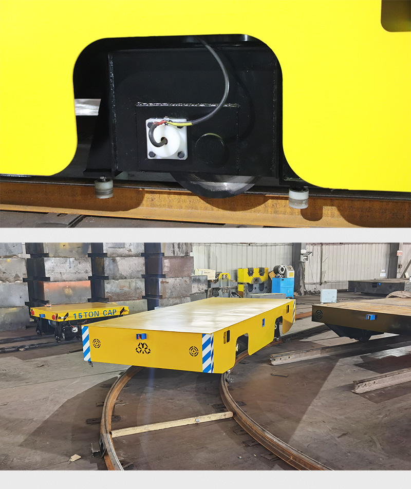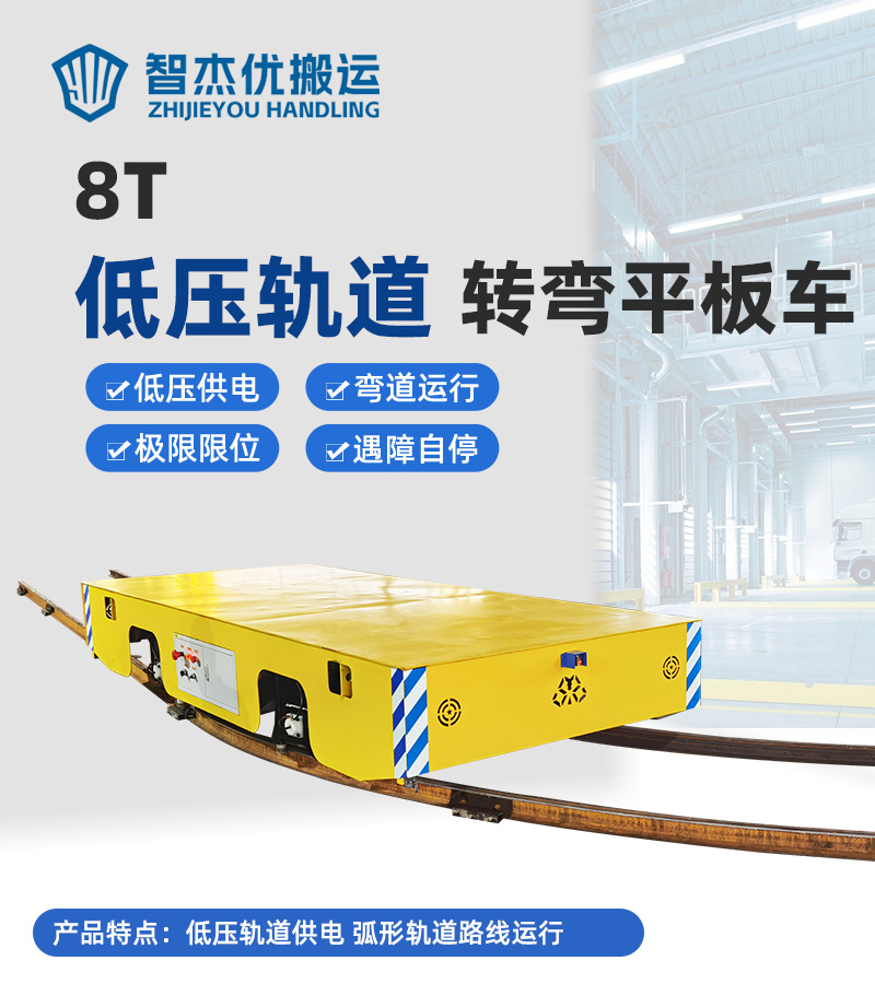 熱線:15517329551 智杰優(yōu)搬運(yùn)為鋼材加工行業(yè)定制的低壓軌道供電平板轉(zhuǎn)運(yùn)車,主要用于車間內(nèi)生產(chǎn)線鋼材的轉(zhuǎn)運(yùn),冶金行業(yè)半成品和成品的運(yùn)輸以及周轉(zhuǎn),額定載荷8噸,采用低壓軌道供電方式,結(jié)合現(xiàn)場作業(yè)需求運(yùn)行于弧形軌道上,行走輪經(jīng)絕緣處理,配備導(dǎo)向輪控制車輛轉(zhuǎn)彎,轉(zhuǎn)彎半徑4.5米,可搭載物料平穩(wěn)運(yùn)行,安全往返運(yùn)輸,兩端設(shè)有極限限位開關(guān),防止小車沖出軌道,光電檢測自動避障,急停開關(guān)應(yīng)對突發(fā)情況,降低作業(yè)風(fēng)險,提升生產(chǎn)靈活性。