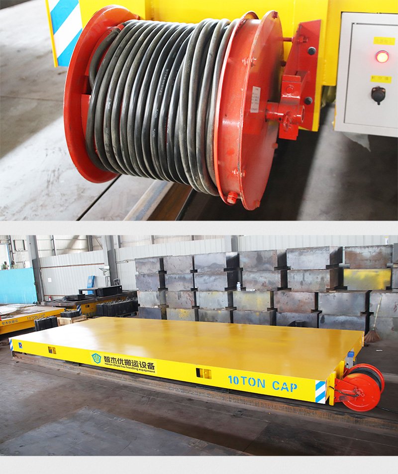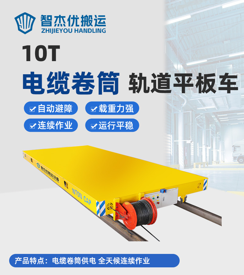 熱線:15517329551 電纜卷筒軌道電動(dòng)平車(chē),整車(chē)長(zhǎng)6米寬2.5米高0.5米,車(chē)架箱梁結(jié)構(gòu)承重力強(qiáng)可搬運(yùn)10噸的貨物,380V電纜供電,設(shè)有卷筒裝置自動(dòng)收放電纜線,可滿足全天候的作業(yè)需求,平車(chē)運(yùn)行距離20米,運(yùn)行速度0-20m/min,支持變頻調(diào)速,無(wú)線遙控和有線手柄兩種操控方式,操作簡(jiǎn)單方便快捷,是車(chē)間短距離物料轉(zhuǎn)運(yùn)的專(zhuān)業(yè)選手。