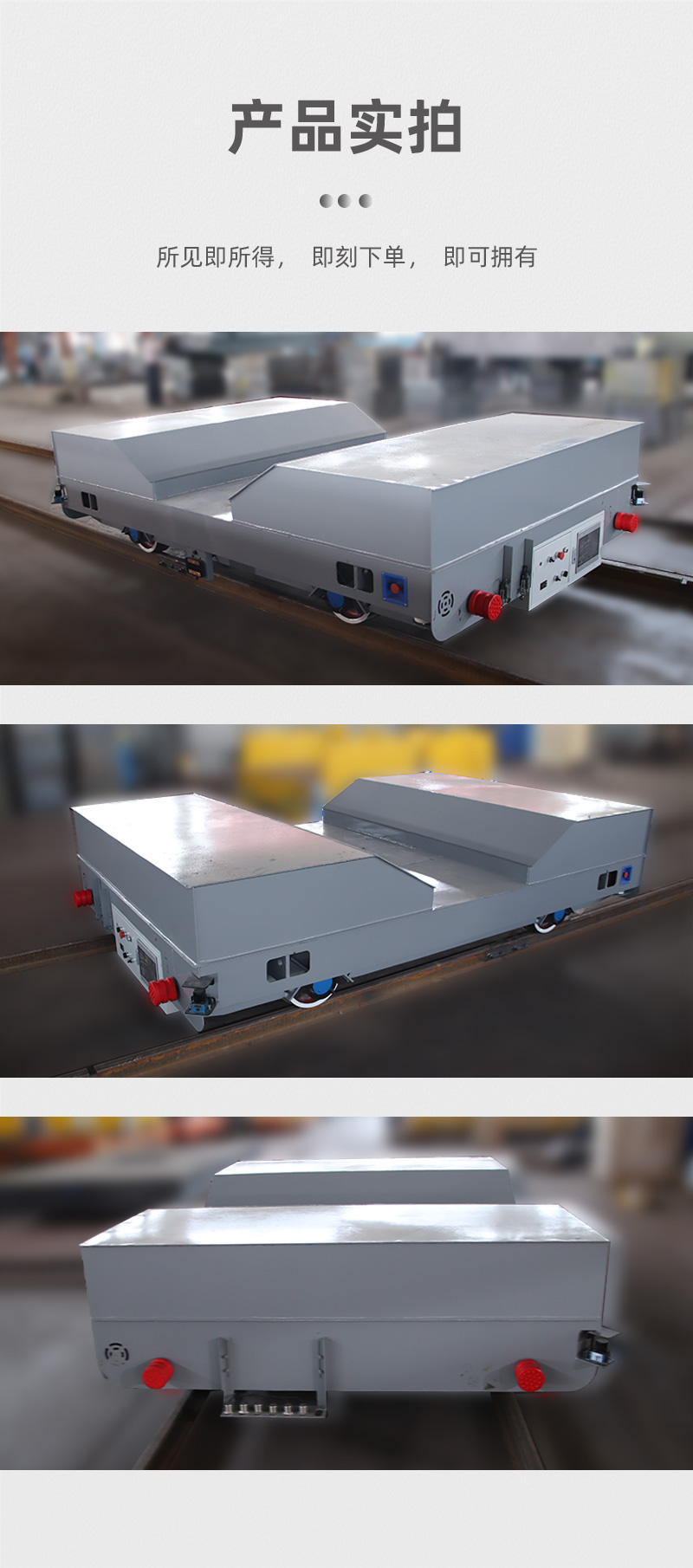 描   述: 這是一臺鋼卷無人自動(dòng)搬運(yùn)車RGV軌道車,整車長3米寬2米,高度0.6米,底盤鋼板箱型梁結(jié)構(gòu)用料扎實(shí)承重力大,可搬運(yùn)10噸的物料,上方馬鞍式托架便于運(yùn)輸圓柱結(jié)構(gòu)物料。