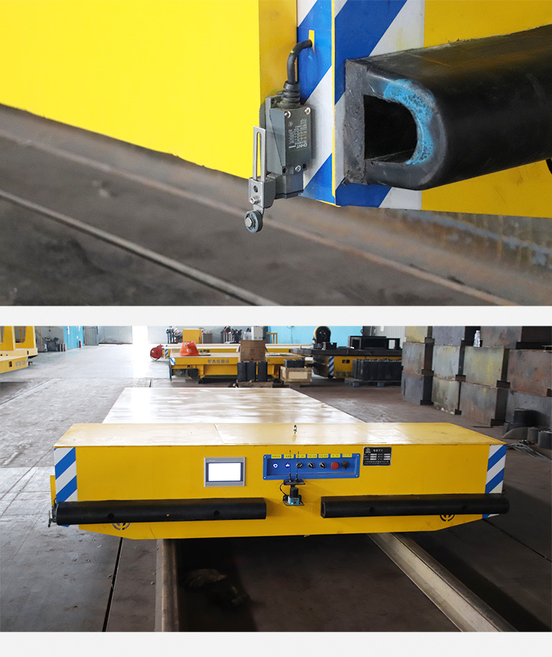 熱線:15517329551 RGV自動化軌道車,整車長6米寬2.3米高0.5米載重3噸,框架結(jié)構(gòu)載重安全系數(shù)不低于1.5倍,客戶現(xiàn)場設有16個工位,每個工位設置一個工位呼叫按鈕,一鍵呼叫控制小車自動化運行,整車采用PLC控制,RFID定位傳感器結(jié)合接近開關(guān)確保小車停車精度正負5mm,同時設有無線AP模塊可與上位機進行通訊實現(xiàn)遠程控制,支持多種通訊協(xié)議連接外部通訊,可連接多臺設備協(xié)同作業(yè),鋰電池供電滿載運行不低于6小時,270度避障雷達掃描到障礙物自動停車,障礙物移開自動行走,同時兩端設有機械防撞裝置,安全系數(shù)拉滿。