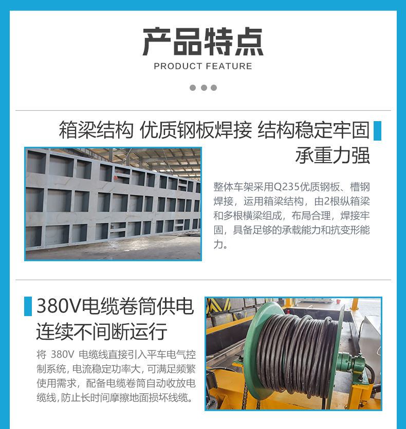 公司保障:電動平車、軌道平車的承重安全系數(shù)不低于60%