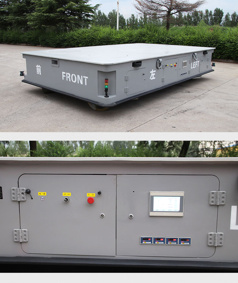 描   述: 無軌電動平車配置天花板它來了,整車長4.5米 寬2.7米 高0.8米,載重80噸,該車由箱梁車架、舵輪驅(qū)動裝置、液壓升降控制系統(tǒng)、稱重系統(tǒng)、PLC控制系統(tǒng)、供電裝置、安全裝置組成,無線搖桿操控小車前進后退、左右轉(zhuǎn)向、縱橫移動,液壓升降、稱重系統(tǒng),滿足用戶不同場景使用需求,更搭載五重安全防護裝置,高效作業(yè)的同時保障貨物、人員、平車的安全。