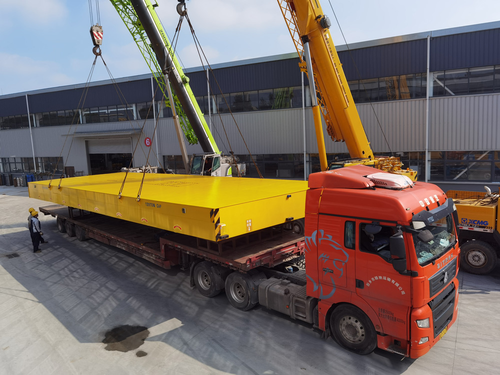 近日,天津客戶定制的120噸大型重載無軌電動平車正式交付發(fā)往客戶現(xiàn)場。此次交付的無軌轉(zhuǎn)運車體量驚人,長達(dá)15米寬達(dá)5米,其核心結(jié)構(gòu)采用高強度整體車架與精密鋼板焊接技術(shù),確保在承受120噸極限載荷時,車體依然穩(wěn)定牢固。