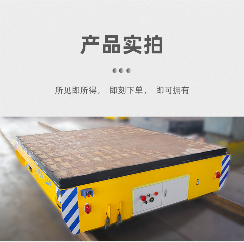 描   述: 這是一臺(tái)山東客戶定制的蓄電池軌道電動(dòng)平車,該車長(zhǎng)2.5米,寬2.2米,高0.5米,車架箱型梁焊接,結(jié)構(gòu)牢固,載重量大,可載重30噸,應(yīng)客戶使用要求,臺(tái)面鋪設(shè)耐火磚;平車采用蓄電池供電,運(yùn)行距離不受限制,遙控器一鍵操作,可啟動(dòng)停止、前進(jìn)后退、調(diào)速等,設(shè)有雙限位開關(guān),可根據(jù)現(xiàn)場(chǎng)設(shè)定地點(diǎn)自動(dòng)停靠,前后光電檢測(cè),遇障自停,聲光報(bào)警保障安全,能夠在垂直軌道、L型軌道、S型軌道、弧形軌道及易爆、擺渡場(chǎng)合使用。
