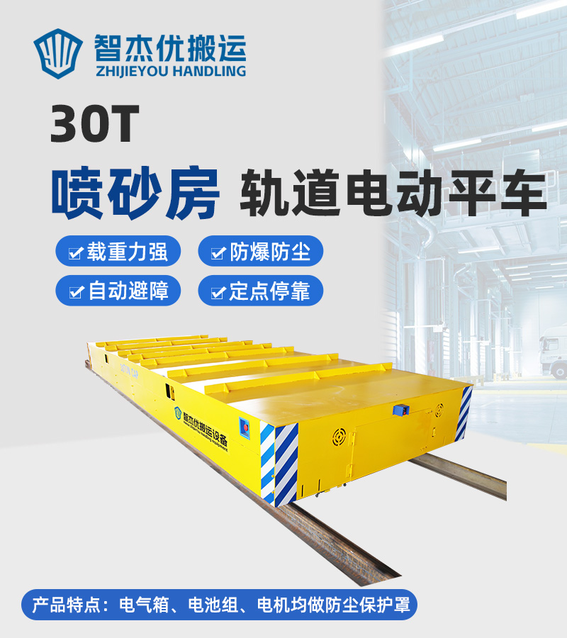 描   述: 噴砂房軌道搬運車電動平板轉(zhuǎn)運車,長6米寬2米高0.6米載重30噸,客戶用于噴砂房物料的轉(zhuǎn)運工作,電氣箱、電機、電池組均做防塵防水設計,無線遙控操作、雙組限位開關平車可定點???,雙組電機減速機驅(qū)動力足傳動效率高。