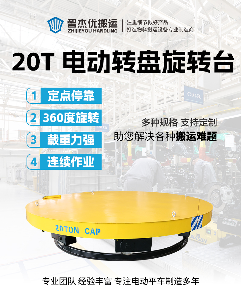 描   述: 客戶訂購的8臺電動轉(zhuǎn)盤***批4臺交付前運行測試,直徑3.5米超大平臺整車箱梁式車架結(jié)構(gòu),高強度鋼板精密焊接成型,可達20噸額定載荷,錐形箱支撐穩(wěn)定牢固。轉(zhuǎn)盤具有手動操作與自動控制兩種模式,雙重限位開關(guān)設(shè)置兩點位自動停靠,180°雙向旋轉(zhuǎn),,定位精度正負3mm,雙工位一鍵切換響應(yīng)快精度高停靠平穩(wěn),外接380V動力系統(tǒng),支持24小時連續(xù)高強度作業(yè)!
