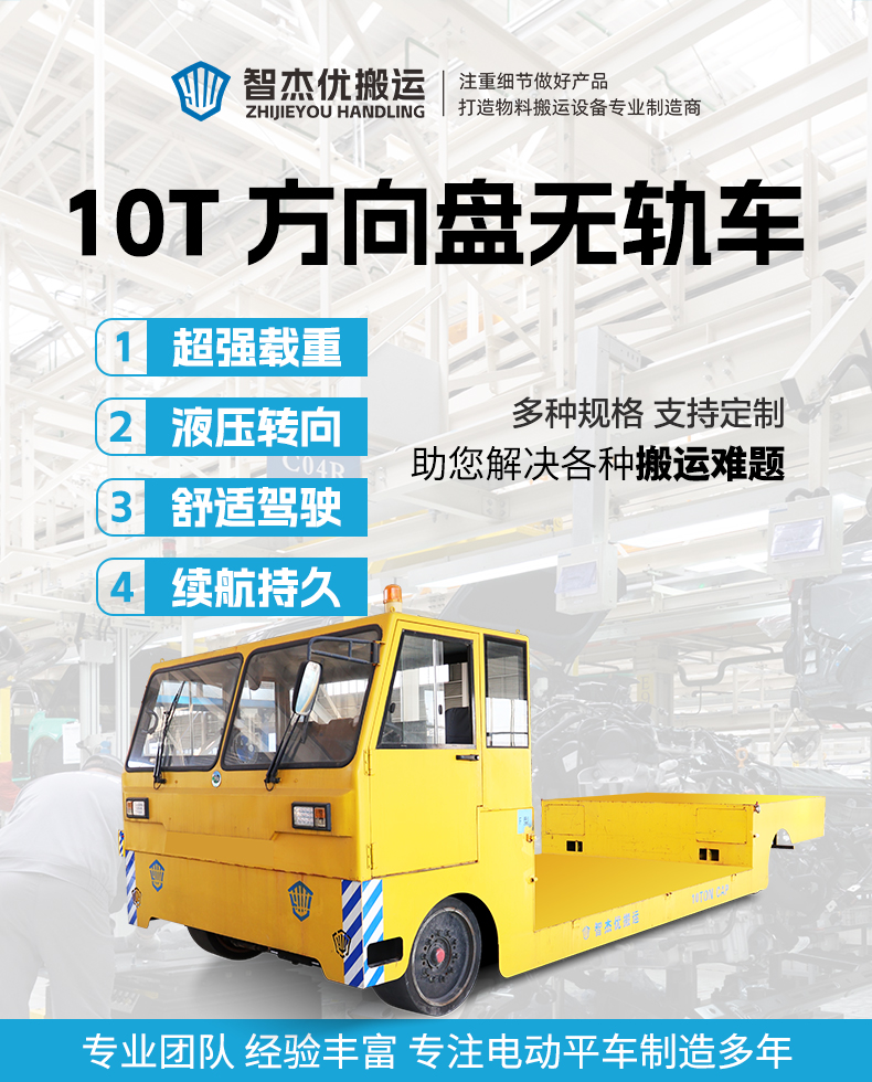 描   述: 3.8米長2.6米寬載物平臺,額定載荷10噸,臺面凹型設(shè)計,輕松應(yīng)對較高設(shè)備過跨轉(zhuǎn)運(yùn),再也不用為設(shè)備尺寸發(fā)愁,車體前方配備獨(dú)立駕駛室,方向盤操控輕松上手,內(nèi)置72V400ah大容量蓄電池,節(jié)能環(huán)保續(xù)航能力出眾,減速機(jī)+電機(jī)+車橋高效驅(qū)動,四組大直徑實(shí)心橡膠輪胎,防滑耐磨耐刺穿復(fù)雜路況輕松拿捏,標(biāo)配LED大燈、轉(zhuǎn)向燈、示廓燈,夜間行車安全有保障,適用于各類廠區(qū)車間倉庫的物料短駁與設(shè)備轉(zhuǎn)運(yùn)!