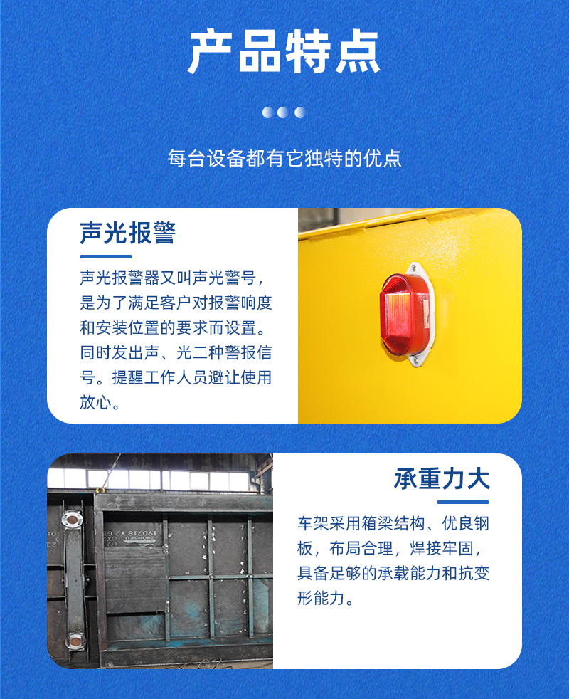 公司保障:電動平車、軌道平車的承重安全系數(shù)不低于60%