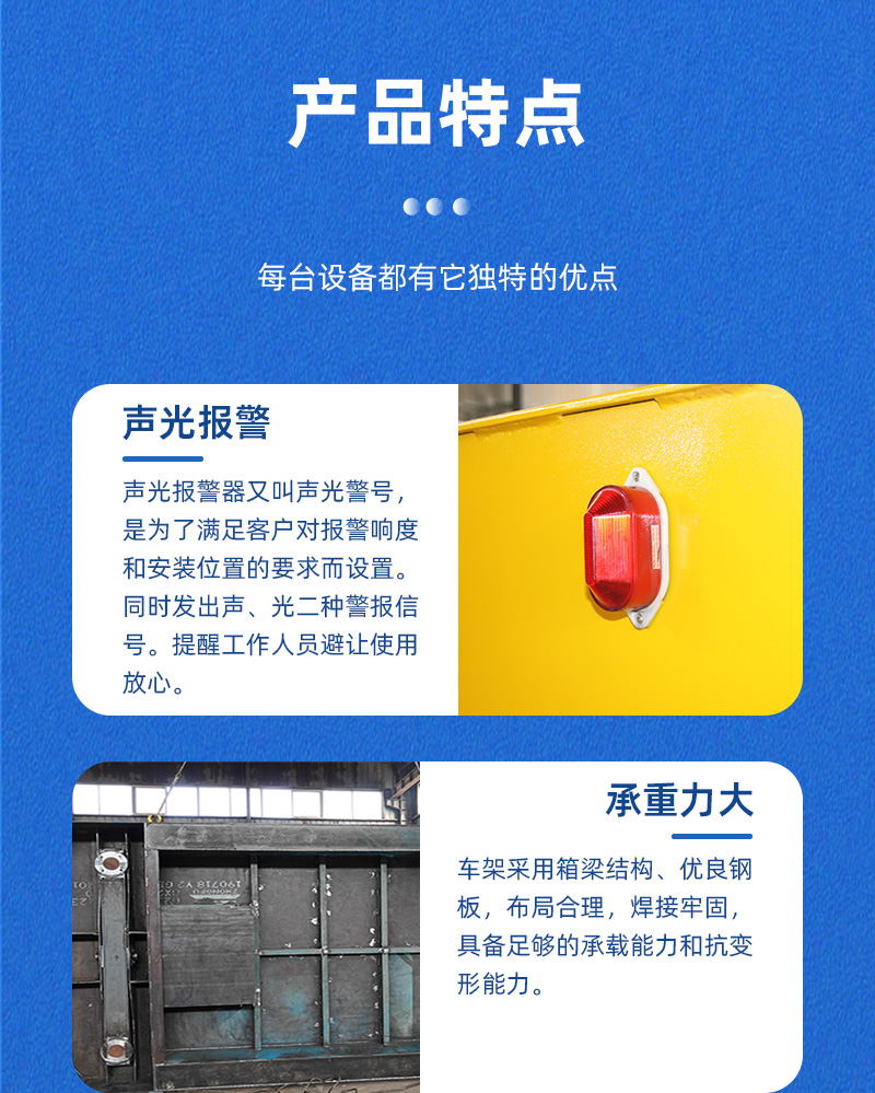 公司保障:電動(dòng)平車(chē)、軌道平車(chē)的承重安全系數(shù)不低于60%