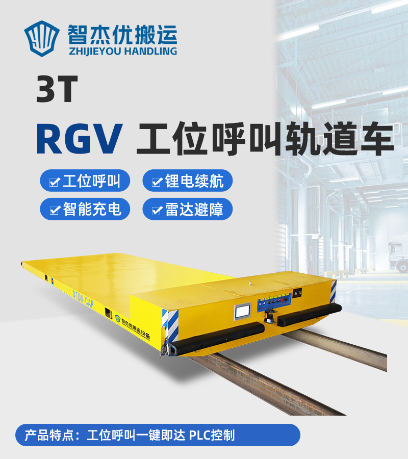 熱線:15517329551 RGV自動化軌道車,整車長6米寬2.3米高0.5米載重3噸,框架結(jié)構(gòu)載重安全系數(shù)不低于1.5倍,客戶現(xiàn)場設有16個工位,每個工位設置一個工位呼叫按鈕,一鍵呼叫控制小車自動化運行,整車采用PLC控制,RFID定位傳感器結(jié)合接近開關(guān)確保小車停車精度正負5mm,同時設有無線AP模塊可與上位機進行通訊實現(xiàn)遠程控制,支持多種通訊協(xié)議連接外部通訊,可連接多臺設備協(xié)同作業(yè),鋰電池供電滿載運行不低于6小時,270度避障雷達掃描到障礙物自動停車,障礙物移開自動行走,同時兩端設有機械防撞裝置,安全系數(shù)拉滿。