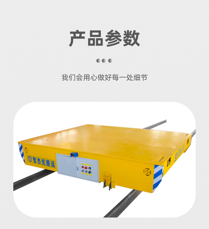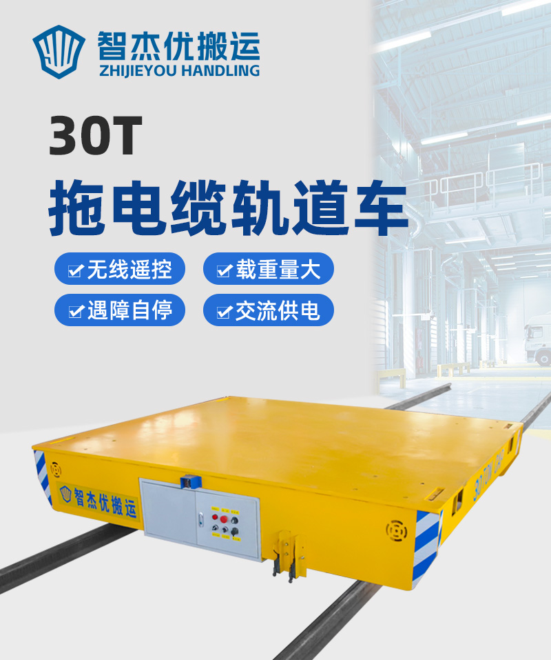 描   述: 拖電纜電動軌道平板車,電纜供電作業(yè)時間不受限制,鑄鋼車輪結(jié)實壽命長,平臺高度低行走平穩(wěn),不易側(cè)翻貨物,低速大功率運行,啟動平穩(wěn)驅(qū)動力大,適用于各種工況。設(shè)有雙組限位傳感器,可根據(jù)現(xiàn)場設(shè)定地點自動停靠,同時可定制升降,稱重、遠(yuǎn)程調(diào)度、車載機械、異形卡槽、滾輪臺面、超低臺面等功能。