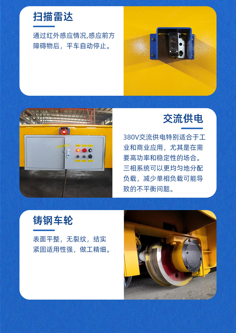 公司保障:電動平車、軌道平車的承重安全系數(shù)不低于60%