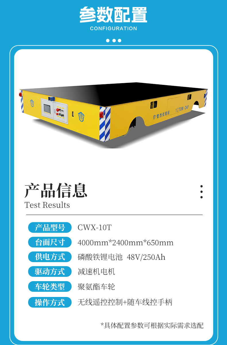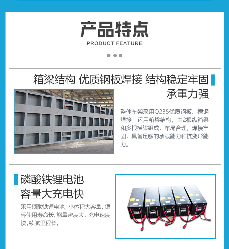 描   述: 工件搬運(yùn)無(wú)軌車車間運(yùn)輸平板車長(zhǎng)4米寬2.4米高0.65米,車架箱梁結(jié)構(gòu)結(jié)實(shí)耐用可搬運(yùn)10噸的貨物。臺(tái)面安裝橡膠防滑墊,鋰電池供電續(xù)航時(shí)間長(zhǎng),人機(jī)交互顯示屏實(shí)時(shí)顯示車輛狀態(tài)故障信息,可手動(dòng)調(diào)節(jié)平車參數(shù)功能設(shè)置。