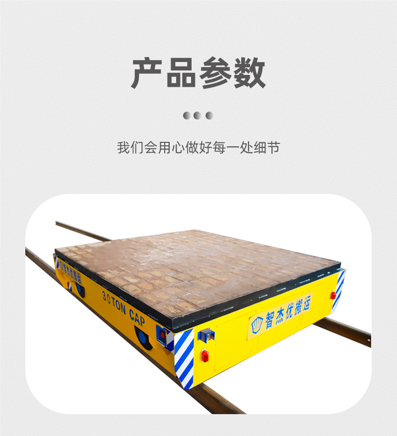 描   述: 這是一臺(tái)山東客戶定制的蓄電池軌道電動(dòng)平車,該車長(zhǎng)2.5米,寬2.2米,高0.5米,車架箱型梁焊接,結(jié)構(gòu)牢固,載重量大,可載重30噸,應(yīng)客戶使用要求,臺(tái)面鋪設(shè)耐火磚;平車采用蓄電池供電,運(yùn)行距離不受限制,遙控器一鍵操作,可啟動(dòng)停止、前進(jìn)后退、調(diào)速等,設(shè)有雙限位開關(guān),可根據(jù)現(xiàn)場(chǎng)設(shè)定地點(diǎn)自動(dòng)停靠,前后光電檢測(cè),遇障自停,聲光報(bào)警保障安全,能夠在垂直軌道、L型軌道、S型軌道、弧形軌道及易爆、擺渡場(chǎng)合使用。