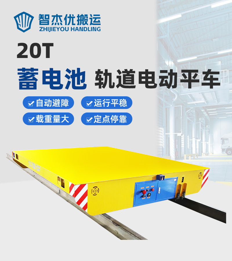 熱線:15517329551 智杰優(yōu)搬運(yùn)為設(shè)備制造業(yè)設(shè)計(jì)生產(chǎn)的蓄電池軌道平板車,長3米寬2.4米高0.45米額定載重20噸,主要用于設(shè)備生產(chǎn)線大型設(shè)備零部件的轉(zhuǎn)運(yùn)作業(yè),蓄電池供電續(xù)航時(shí)間長,采用無線遙控、線控手柄兩種操作方式,平車車架箱梁結(jié)構(gòu)穩(wěn)定載重力強(qiáng),設(shè)有限位開關(guān),可實(shí)現(xiàn)軌道車定點(diǎn)??堪徇\(yùn)作業(yè),同時(shí)極限限位防止小車沖出軌道,平車具有欠壓、過壓、過流、超載、短路、低電量等防護(hù),前后光電檢測自動(dòng)避障,聲光報(bào)警急停開關(guān)確保平車安全平穩(wěn)運(yùn)輸作業(yè)!