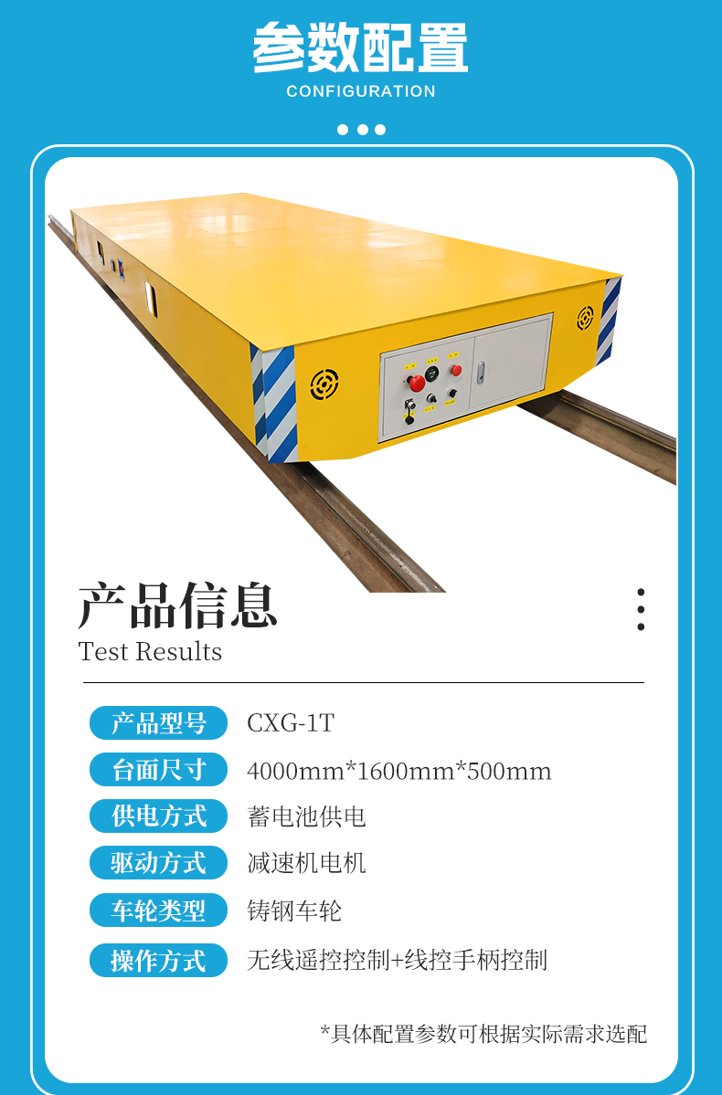 描   述: 蓄電池軌道電動(dòng)平車,整車長4米寬1.6米高0.5米額定載重1噸,客戶用于生產(chǎn)線零部件的轉(zhuǎn)運(yùn)。高強(qiáng)鋼車架箱梁結(jié)構(gòu)穩(wěn)定牢固承重力強(qiáng),工業(yè)蓄電池供電可根據(jù)運(yùn)行時(shí)間定制電池容量,軌道運(yùn)行穩(wěn)定可靠。高硬度鑄鋼車輪耐磨損壽命長,支持遙控/手柄多模式操控,靈活適配生產(chǎn)需求。配備聲光報(bào)警、斷電保護(hù)、緊急制動(dòng)、光電檢測,***守護(hù)作業(yè)安全。軌道式電動(dòng)平車多種供電方式可供選擇,蓄電池、滑觸線、低壓軌道、電纜卷筒。