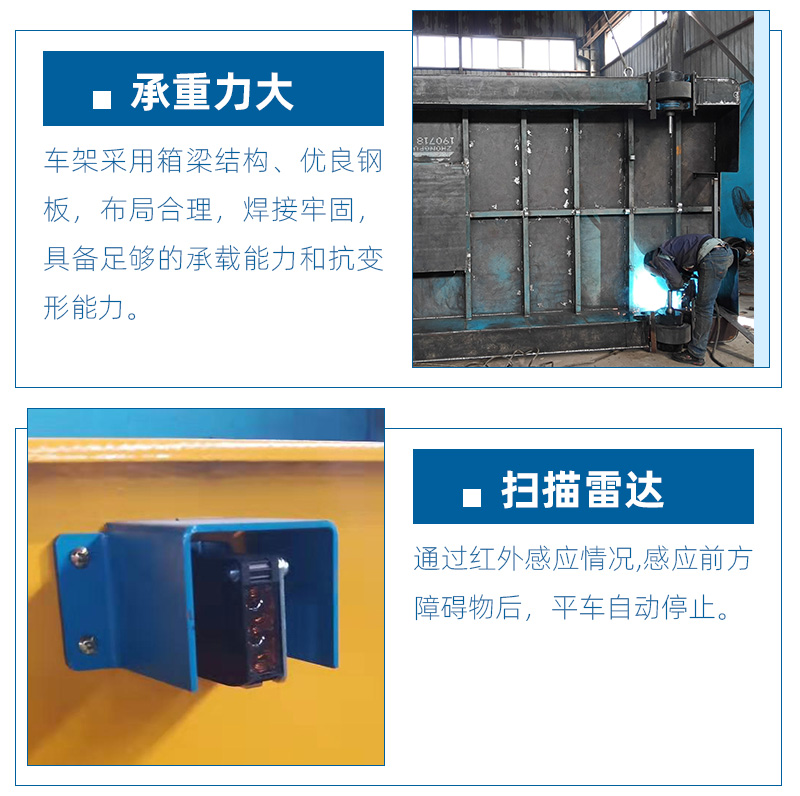 公司保障:電動平車、軌道平車的承重安全系數(shù)不低于60%
